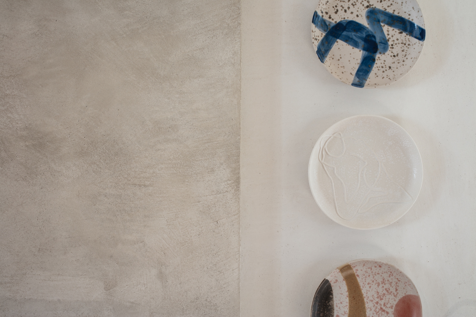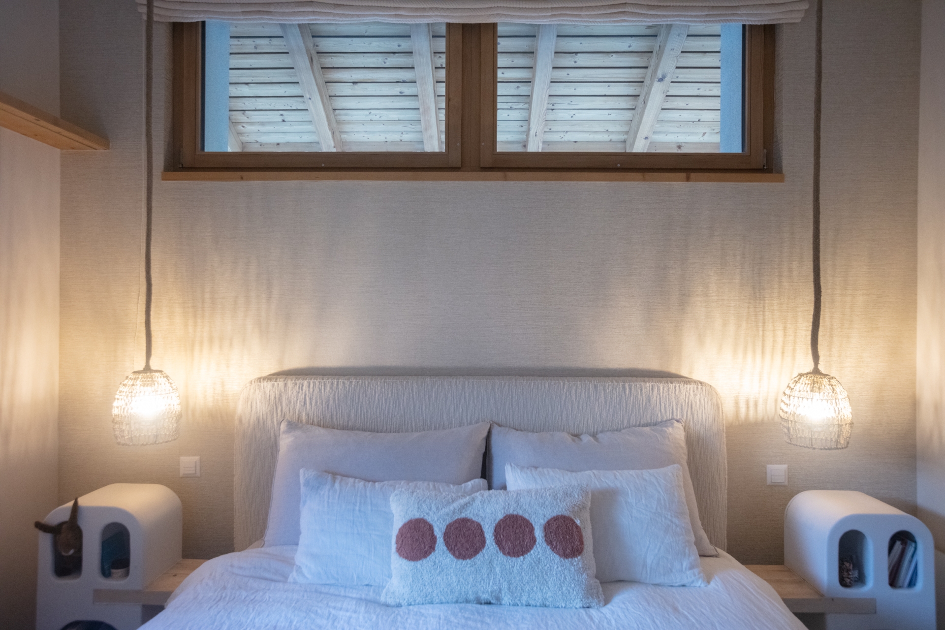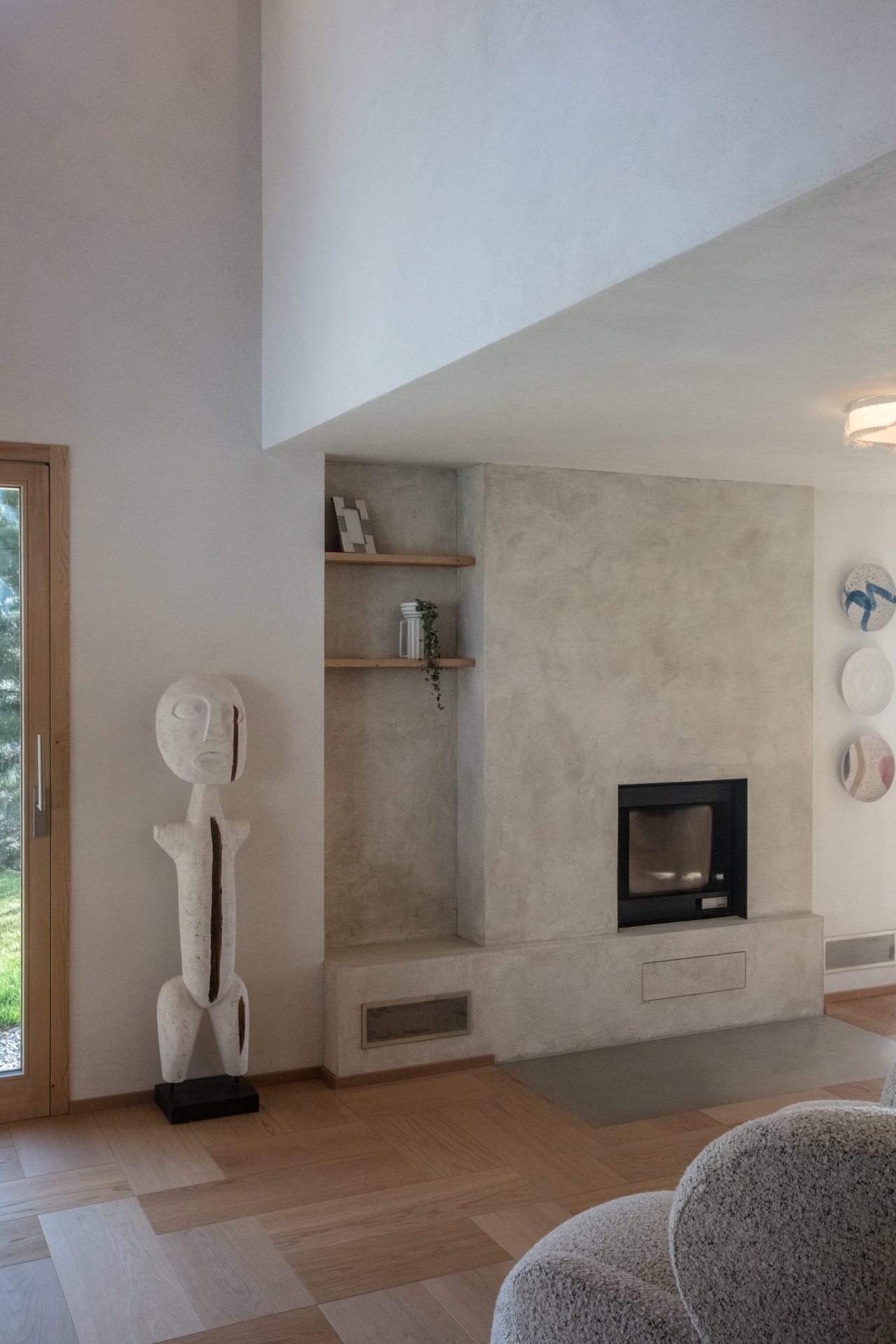 Les murs habillés d'enduit naturel à la chaux révèlent une texture authentique, une matière vivante qui respire et évolue avec la lumière.