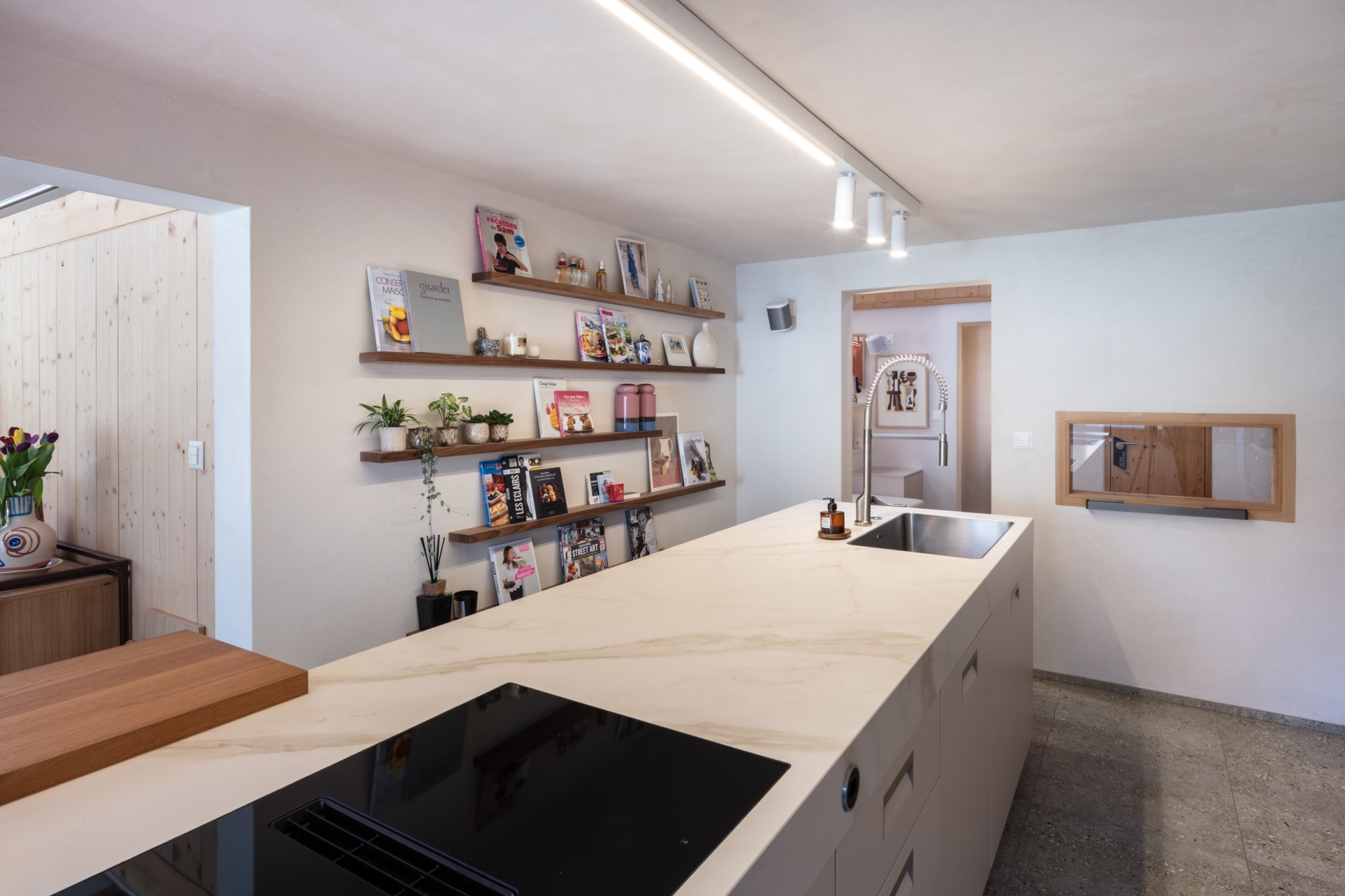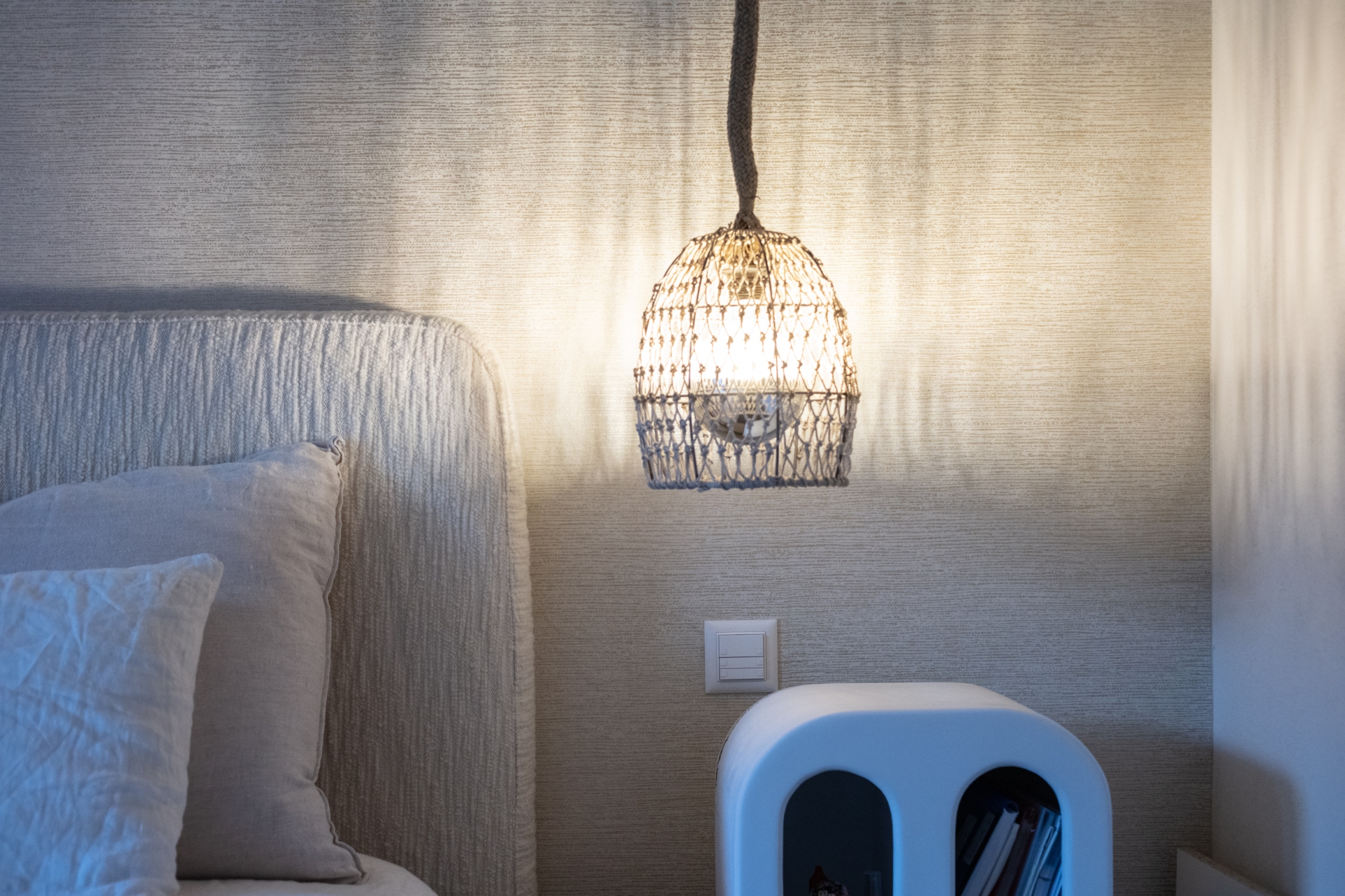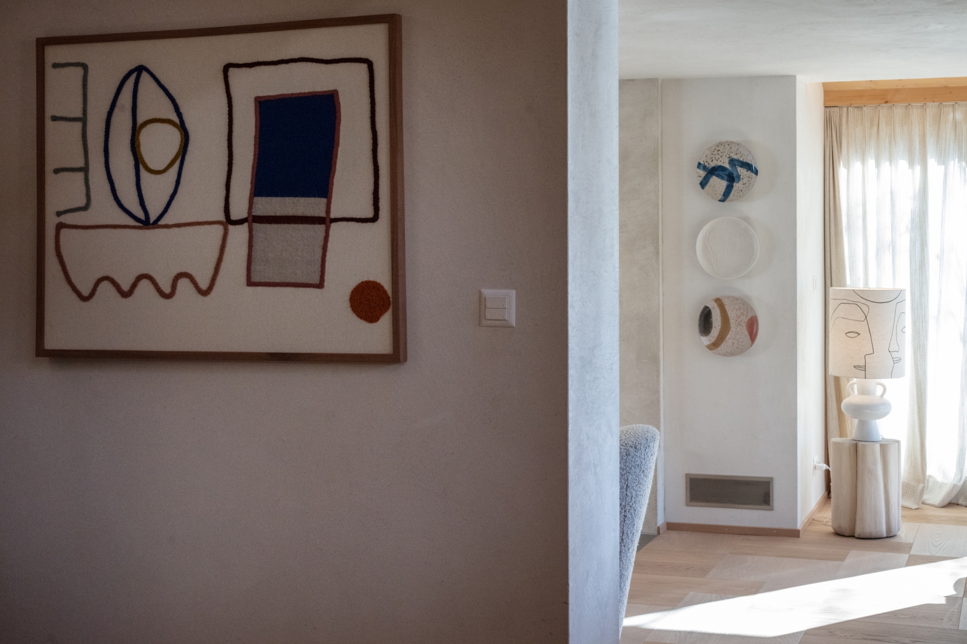 Les murs habillés d'enduit naturel à la chaux révèlent une texture authentique, une matière vivante qui respire et évolue avec la lumière.