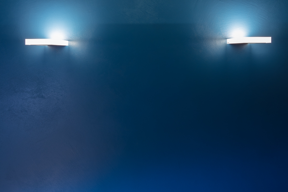Portes et encadrements: Peinture email en 4 différentes nuances de bleu, selon concept de couleurs